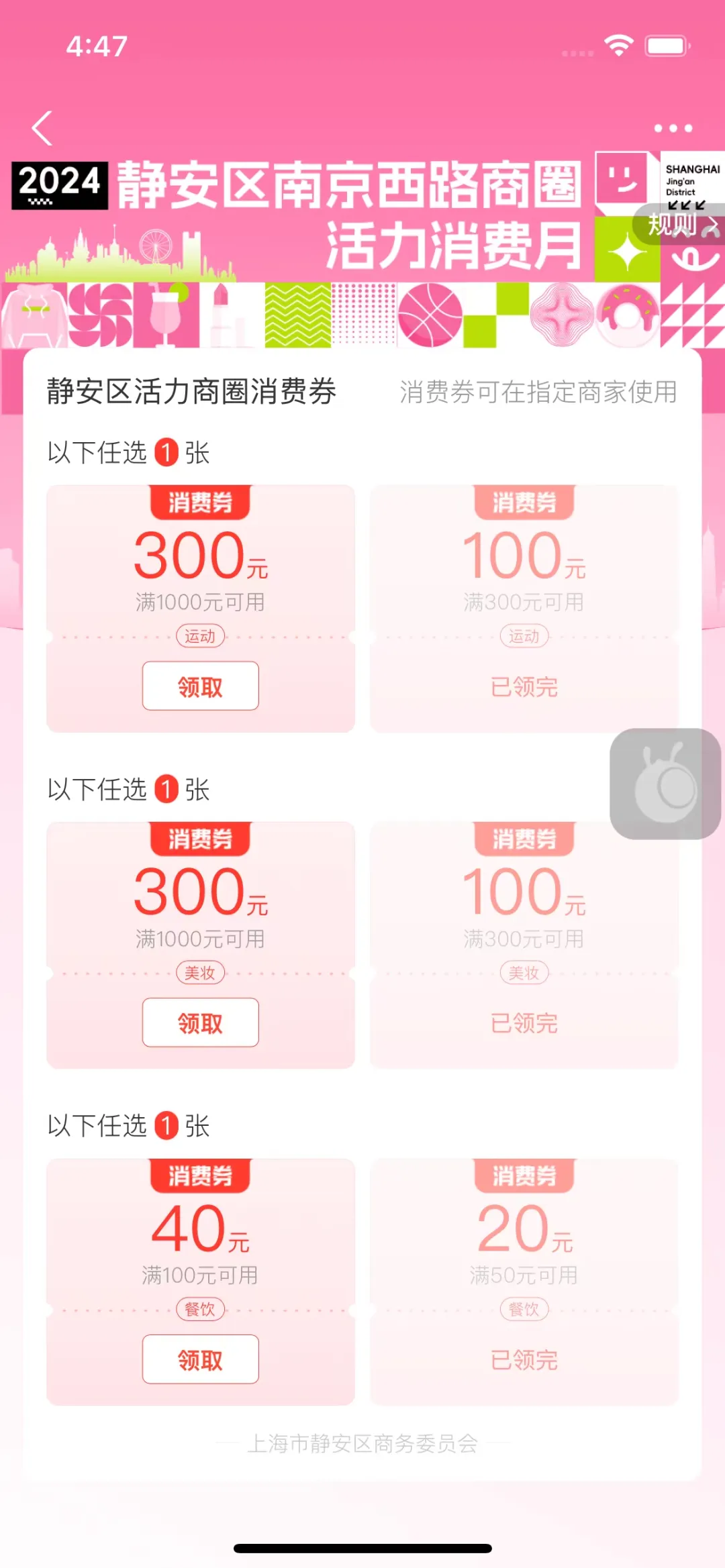 上海市政府に倣い、区レベルでも同様の消費クーポンの配布が開始されています。