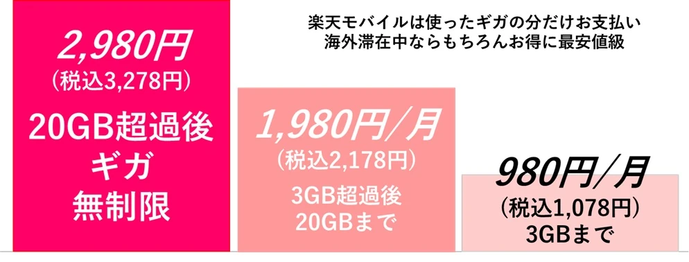 ■おすすめは楽天モバイル!海外滞在中の料金が断然安くなります