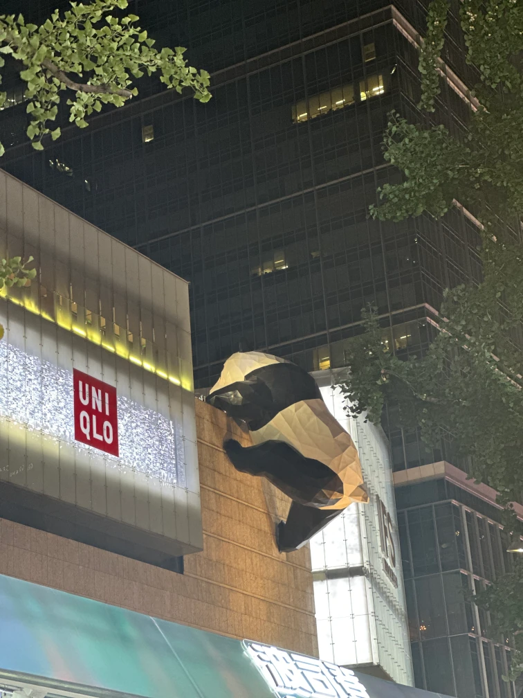 成都メインストリート太古里・ビルをよじ登るバンダや3D広告が有名