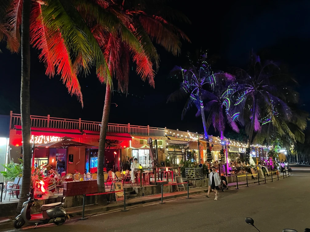 夜になるとビーチ沿いのバーストリートが活気づきます。